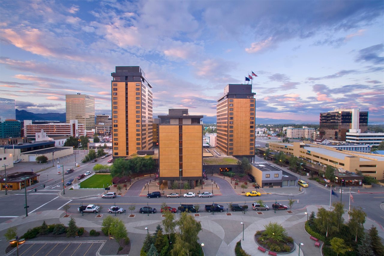 Book nowLocated near Ted Stephens Intl Airport, this full service hotel won't disappoint! Bed options include 2 double or 1 king rooms, all with a private bathroom, lounger sofa, work table, large cable TV, and wifi. Hotel has a bar, 24/7 pantry, coffee shop, indoor pool with hot tub, and fitness center. Parking is free while a guest at the hotel. Airport shuttle available.